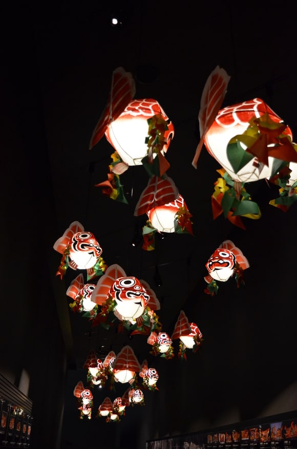 実際のお祭りに近い状態になるように、館内が全体的に夜の雰囲気で暗いのも良い感じです。