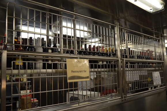 こちらのレストランでは飲みきれなかったワインボトルは、ちゃんとクルーズカードとテーブル番号を控えて、保管してあります。
