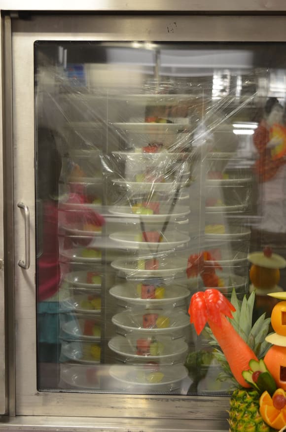 冷菜類はもうすでに盛り付けられて冷蔵庫にセットされています。
