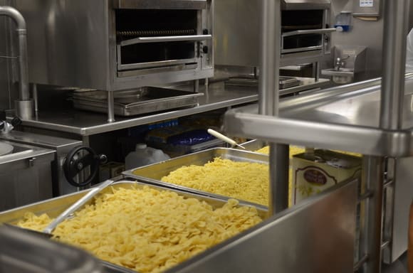 1日に用意されるパスタ400ポンド、じゃがいも600ポンド、お野菜2250ポンド、スープ500ガロン。