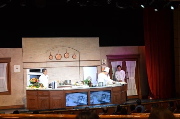 プリンセスシアターでシェフノアントニオコルテッセさんによるお料理ショーを観た後、ギャレー(調理室)を見学できるというツアーですぞ。