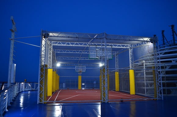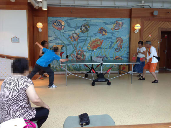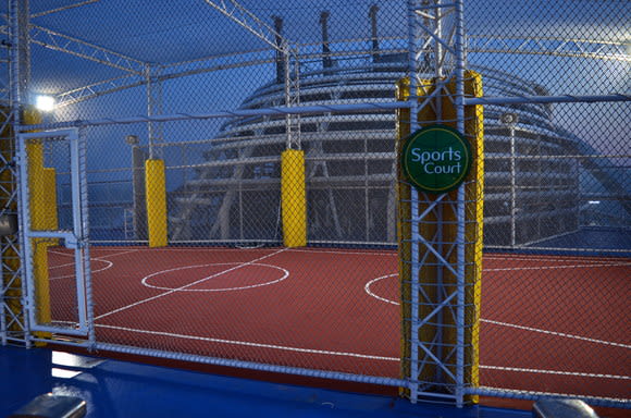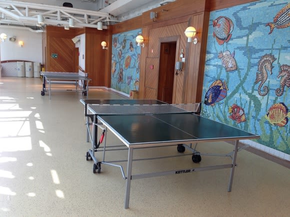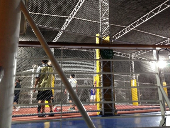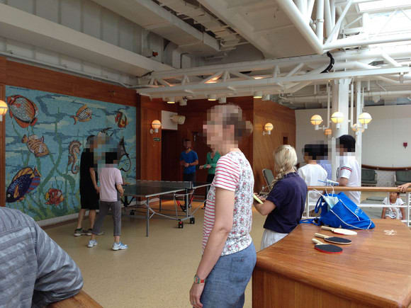 これは下船日の朝で、ラケットやボールが片付けられているので無人なのですが…