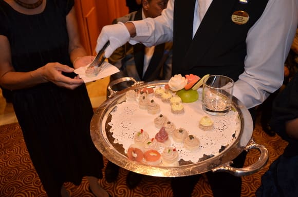 このパーティの間はこうしてフィンガーフードも配られますし、シャンパン、ミモザ、オレンジジュースもどんどん配られます。
