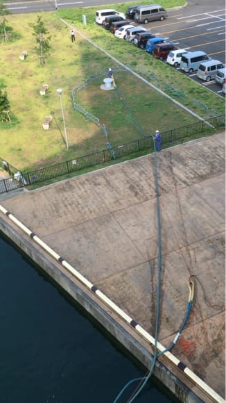 この10万トン以上の船をロープで繋いでいて、