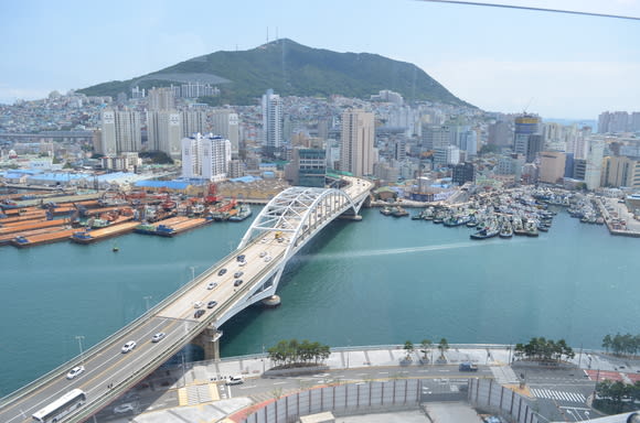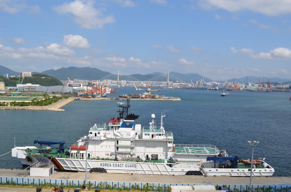 釜山って、海からみると、高層ビルと近代的な建物がいっぱいできれいな港だわ。