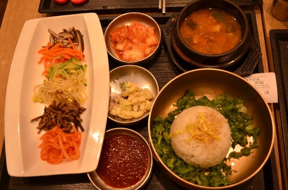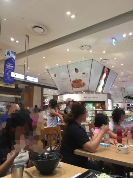 お昼はロッテデパートの地下にあるきれいなフードコートで韓国料理?をいただきました。