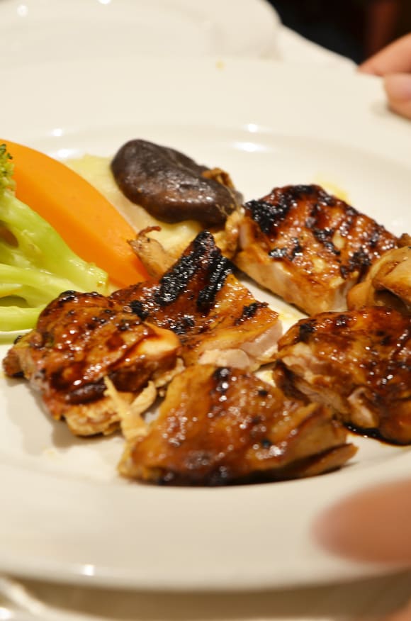 鶏胸肉ともも肉のあぶり焼き、その日の蒸し野菜添え