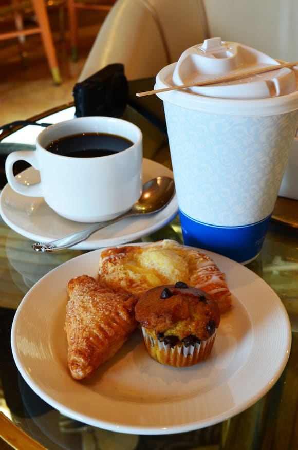 ロビーバーにて、カプチーノのラージサイズとレギュラーコーヒー(コーヒーカードがあると無料)を、母、叔母と三人で分けていただきました。