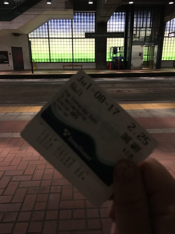 またまた帰路につくファンの皆様について行って、リンクライトレールにてインターナショナルディストリクト駅より乗車『スタジアム駅の方が近いけどお散歩がてら歩きました)ウエストレイク駅で下車。