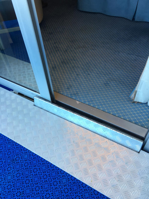 この板がサッシを開け切ると下に倒れて段差がなくなり、