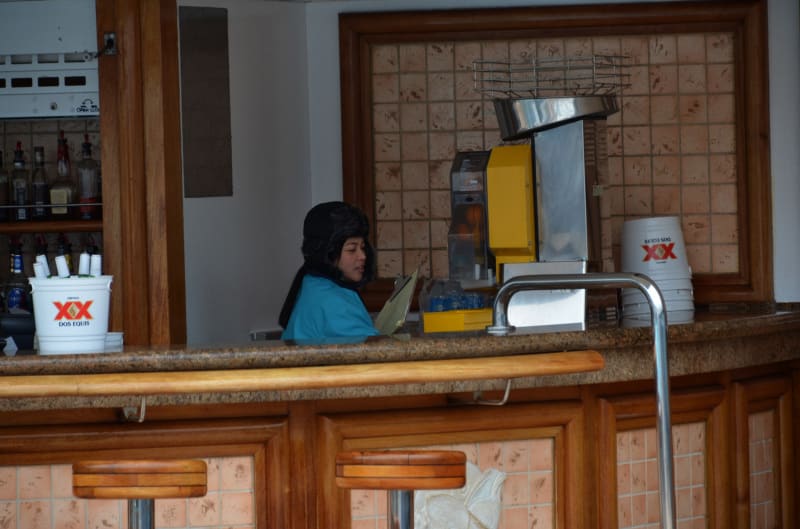 デッキ上(プールやプールサイドバー)のスタッフは、ジャンバーとお帽子着用でお仕事です。