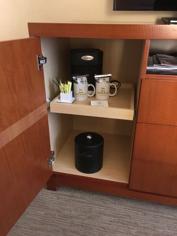 キャビネットの下に、コーヒーメーカーと、アイスペール。
