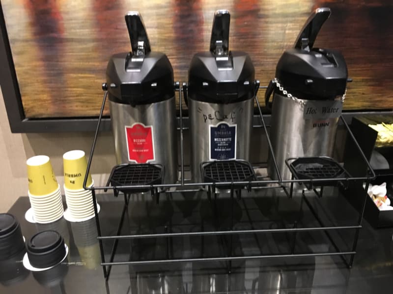 コーヒー、デキャフェ、お湯で、ティ-バッグもたくさんありました。