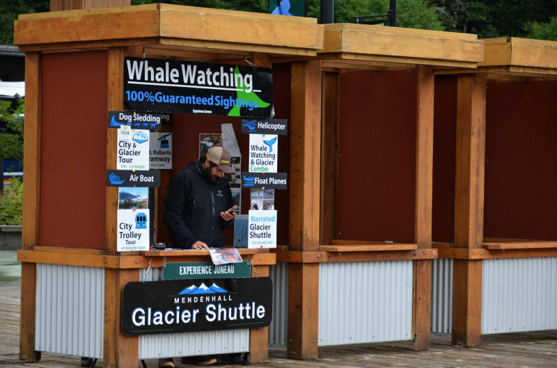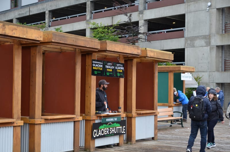 クルーズ船ターミナルの町寄りのところ、「Tracy's King Crab Shack」の前あたりにこういうツアー会社のボックスがたくさんありました。
