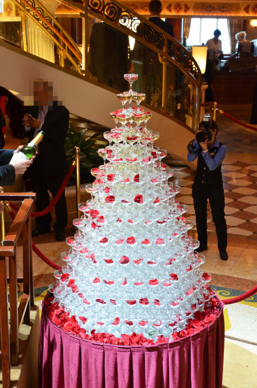 キャプテン主催のウエルカムパーティとシャンパンウオーターフォールです。