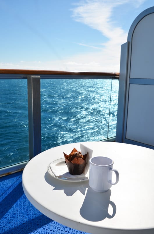 チョコカップマフィンとコーヒーをバルコニーでいただきました!