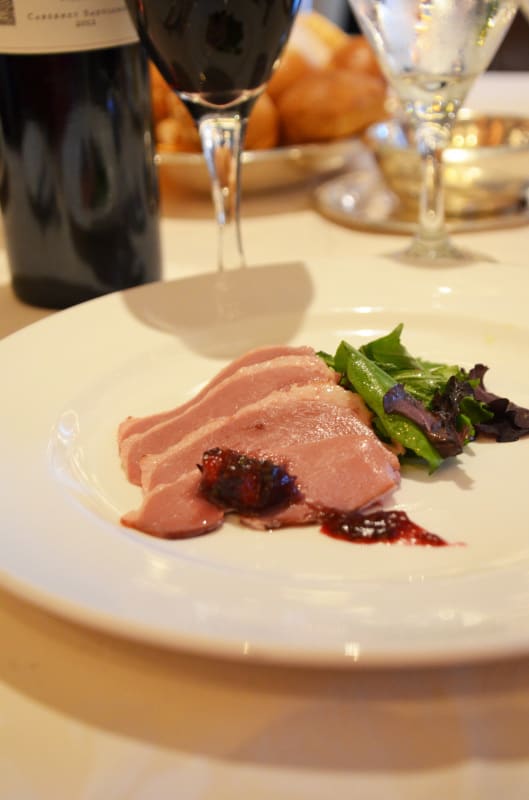 前菜は「アップルウッドでスモークした鴨の胸肉」