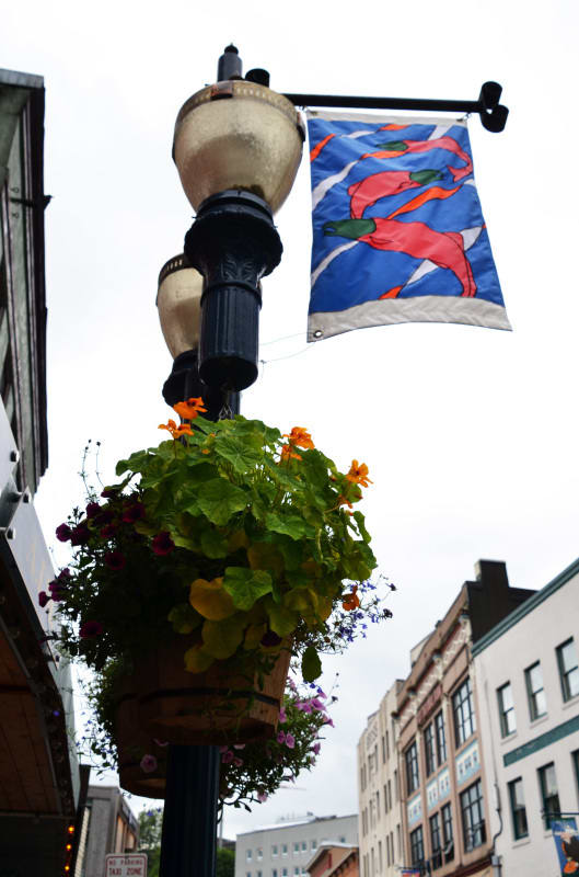 でも、短い夏を楽しむためか、ハンギングバスケットのきれいなお花がたくさんあります。