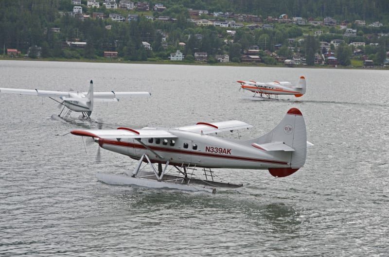 観光遊覧水上飛行機が、次から次へと飛び立っていきます。