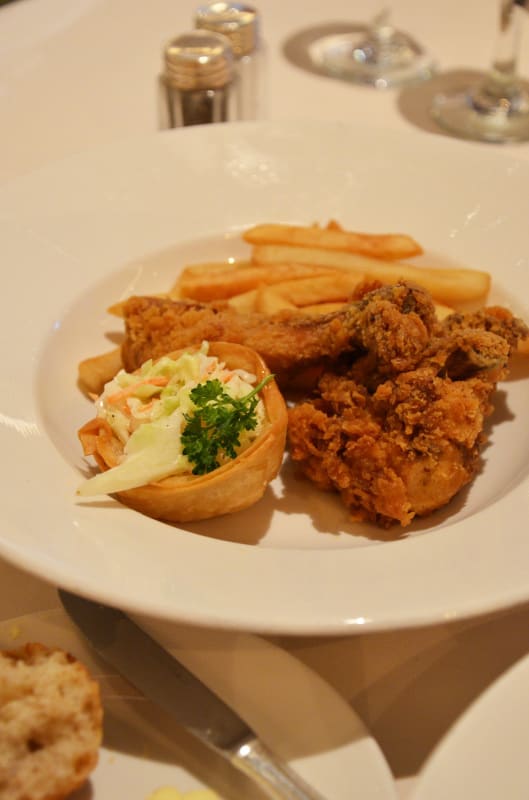 そして、お肉のメインは「南部風フライドチキン」コールスローサラダとフライドポテトを添えて。