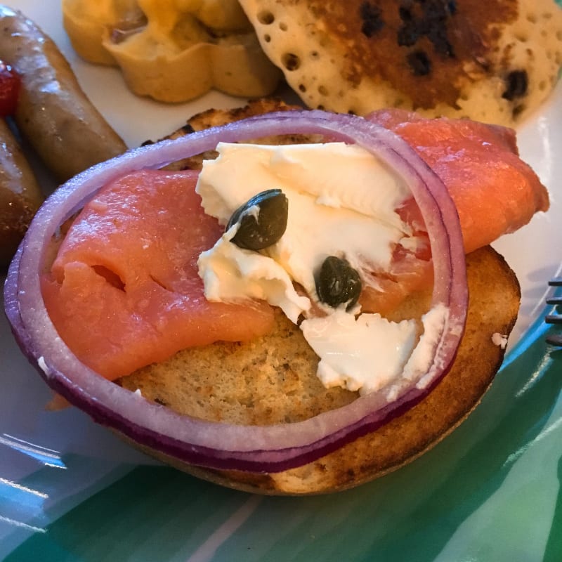 もちろん、ベーグルにはスモークサーモンとクリームチーズをonですよ!