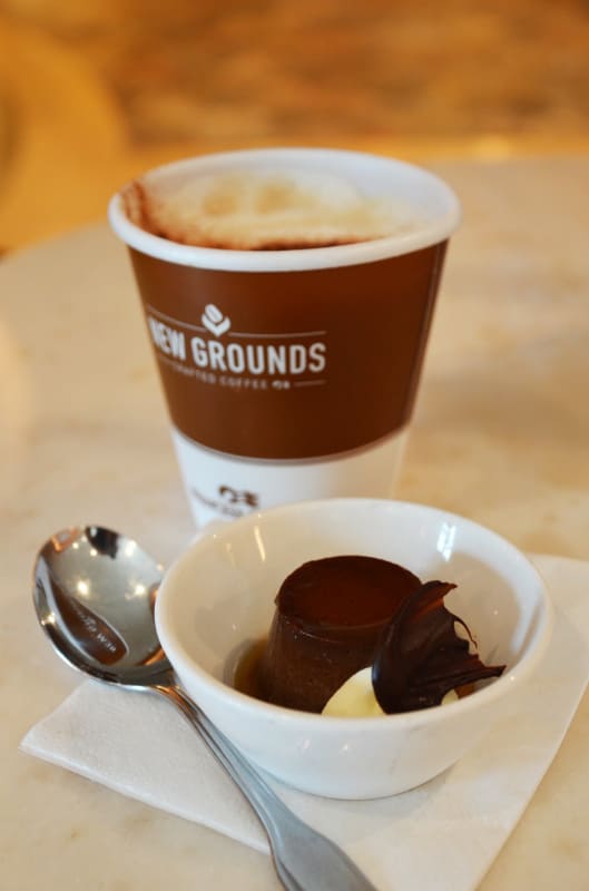 ボネ(アマレットが効いたチョコレートプリン)とカプチーノ。