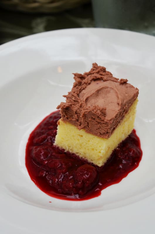 フルーツソースが酸っぱすぎたけど、ケーキ自体は甘さ控えめな気がしました。