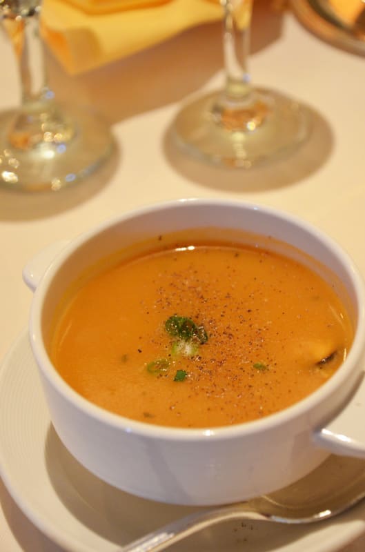 コニャック入りロブスタークリームソース、白身魚、海老、黒ムール貝
