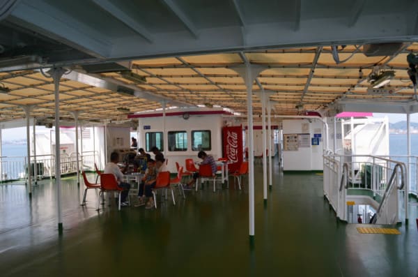 帰りのフェリーの中ではバスから降りずに、のんびりしましたわ。