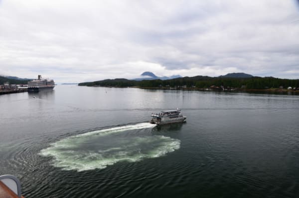 こちらは、観光船。朝早くからお客さんを運んでいます。アラスカを南下してきて船の観光が多くなりました。