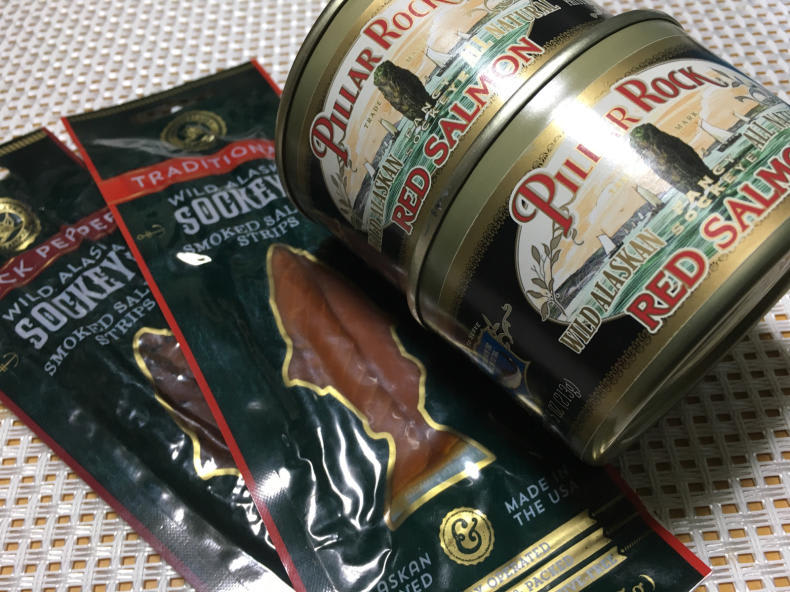 お土産に、サーモンの缶詰や燻製、買っちゃいましたよ。