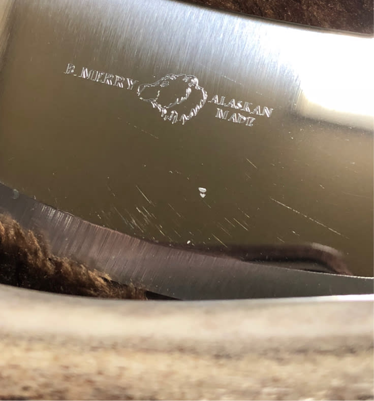 アラスカのナイフ職人さん「BOB MERRY」氏の刻印入りでございます。