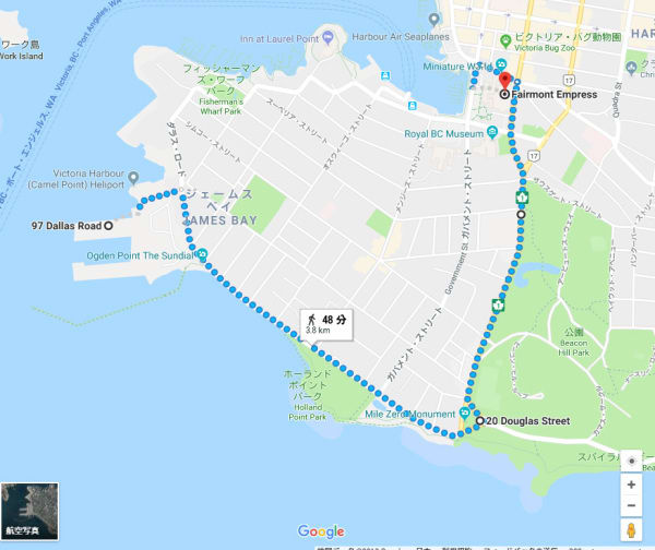 フェアモントエンプレスホテルまでも、海岸沿いを歩いていくと30分位で行けそうです。