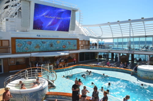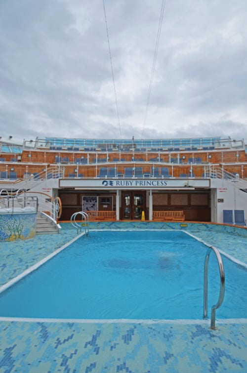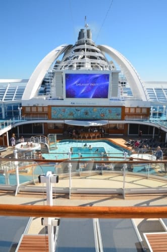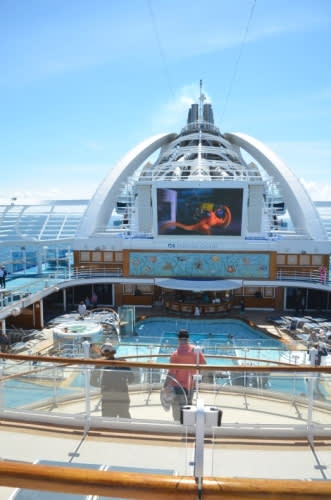 ルビープリンセスには、なんと屋内プールがなく、ダイヤモンドプリンセスの屋内プール、カリプソリーフ&プールの位置にスクリーンがあるのです。
