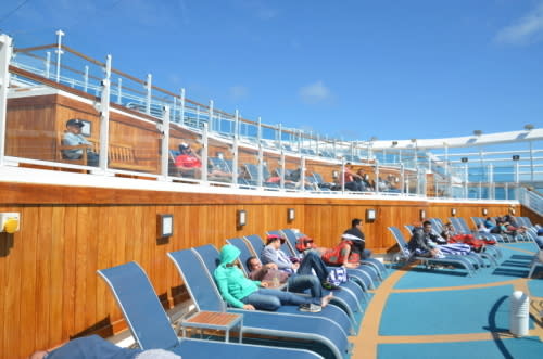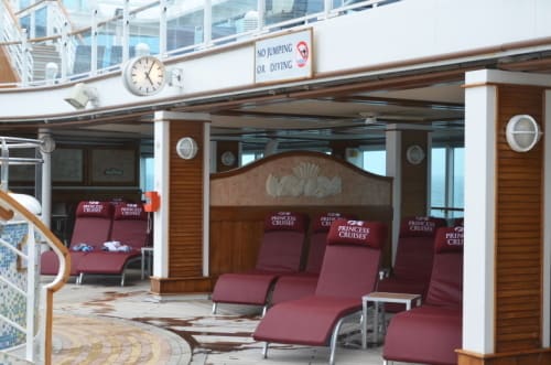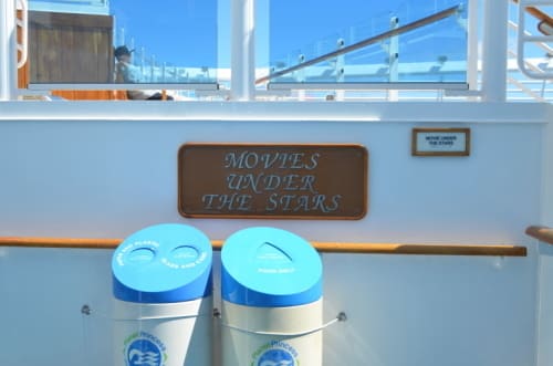 そしてダイヤモンドプリンセスでは、卓球台や寝台が置いてあるコンサバトリーと言うスペースがウッドデッキとなって、映画の観覧席になっています。