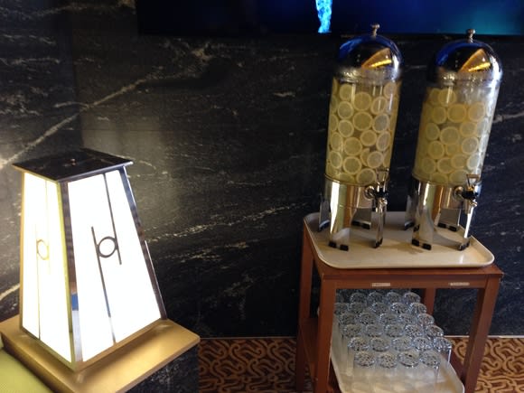 お風呂の脱衣所を出て、外のジャグージーの入り口の前にはレモン水のサービスもありました。