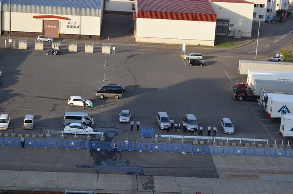 朝の5時40分位から、入国審査の係員の皆さまが岸壁で待機していらっしゃいました。