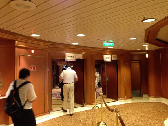 入国審査は、日本国籍の人は6階中央とパシフィックムーンダイニングルーム。
