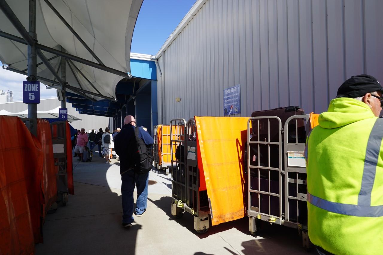 陽気なスタッフが多いロイヤルカリビアンのチェックインカウンターですが、我々のカウンターは物凄く真面目なインド系の男性。