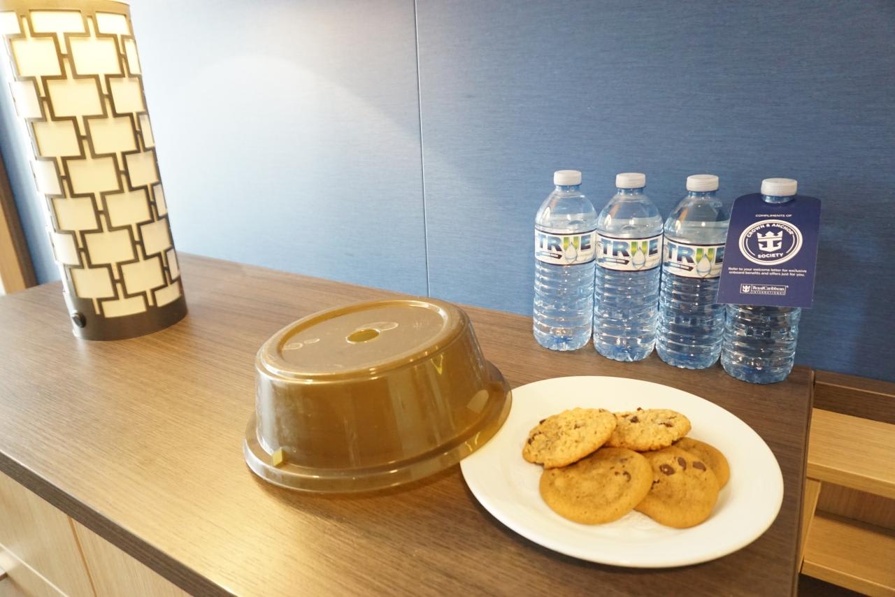 C&Aエメラルドの特典ミネラルウォーター&スナック。
