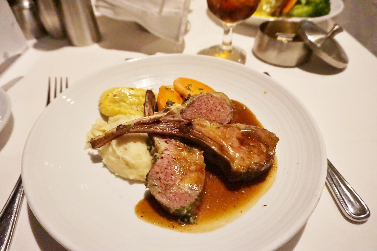 メインダイニングの夕食は大好きなラムチョップ。