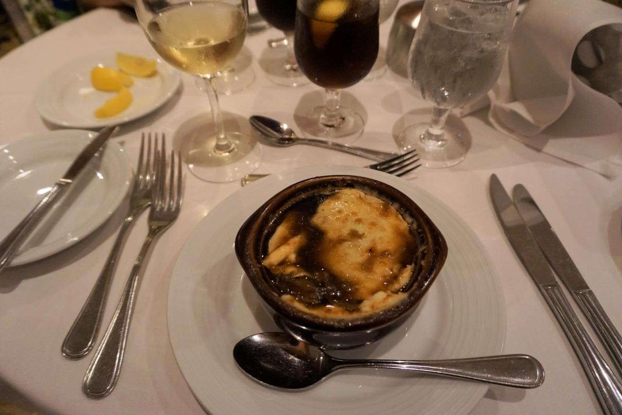 ディナーはオニオングラタンスープでスタート。