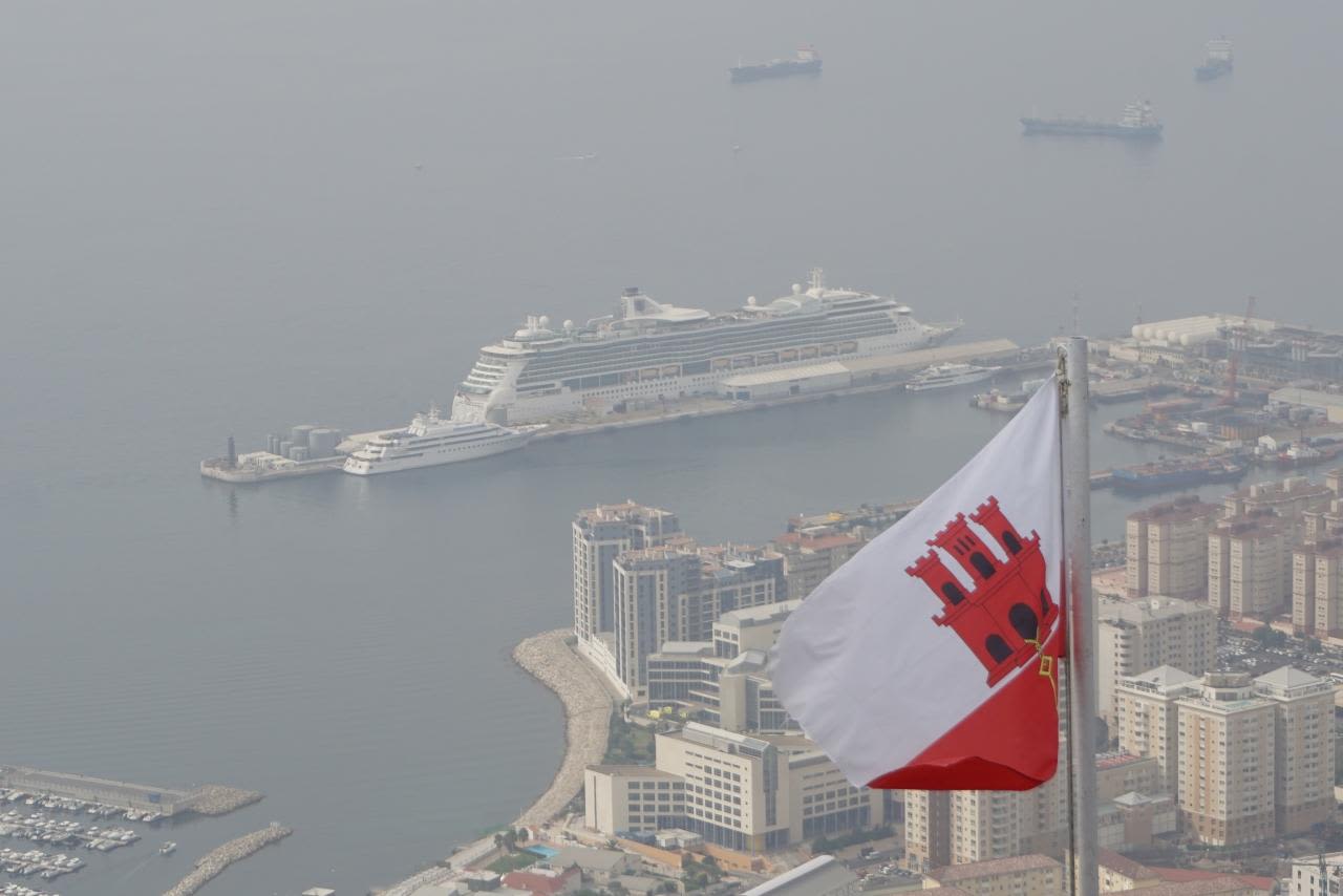 ジブラルタルのシンボル旗とBrilliance of the seas。