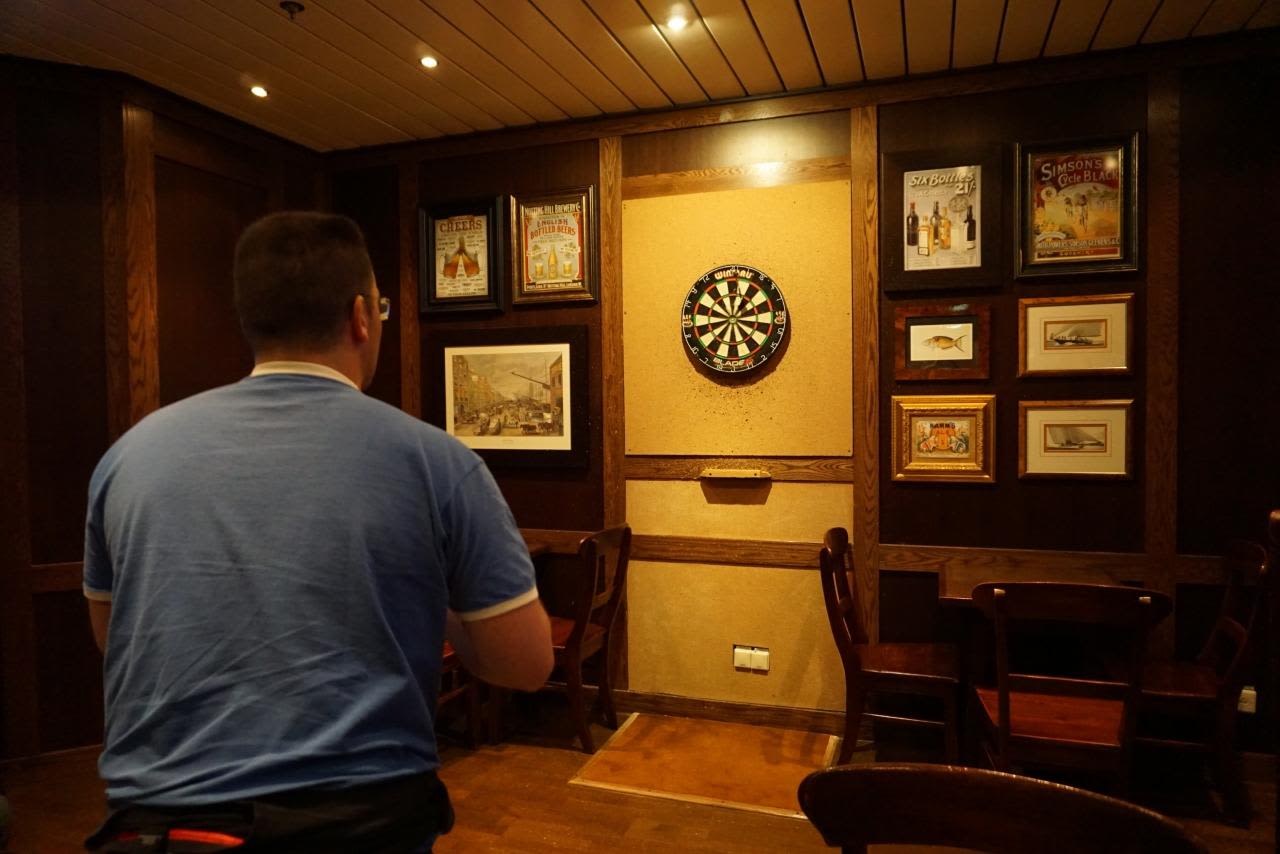 バーに遊び行ったら一人でダーツを頑張るお兄さん。