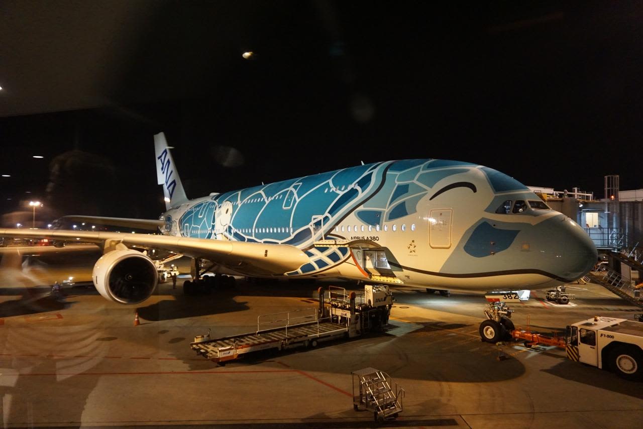 ANAのハワイ便、A380フライングホヌが隣にいました。
