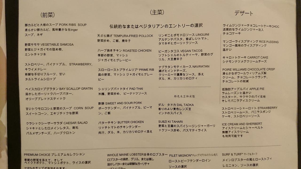 メインダイニングのメニューは日本語版もあります。