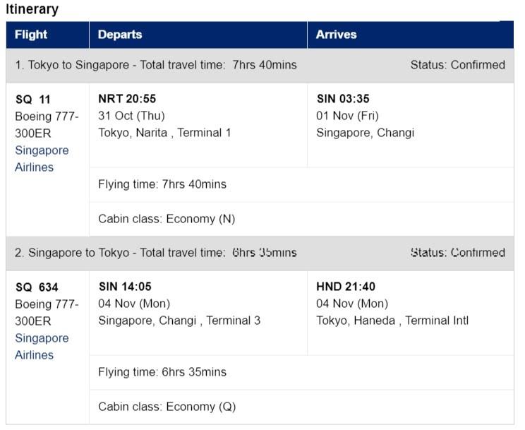 帰りは翌日仕事に行くのに少しでも早く日本に帰ってきたいので羽田着のSQ634を選択。