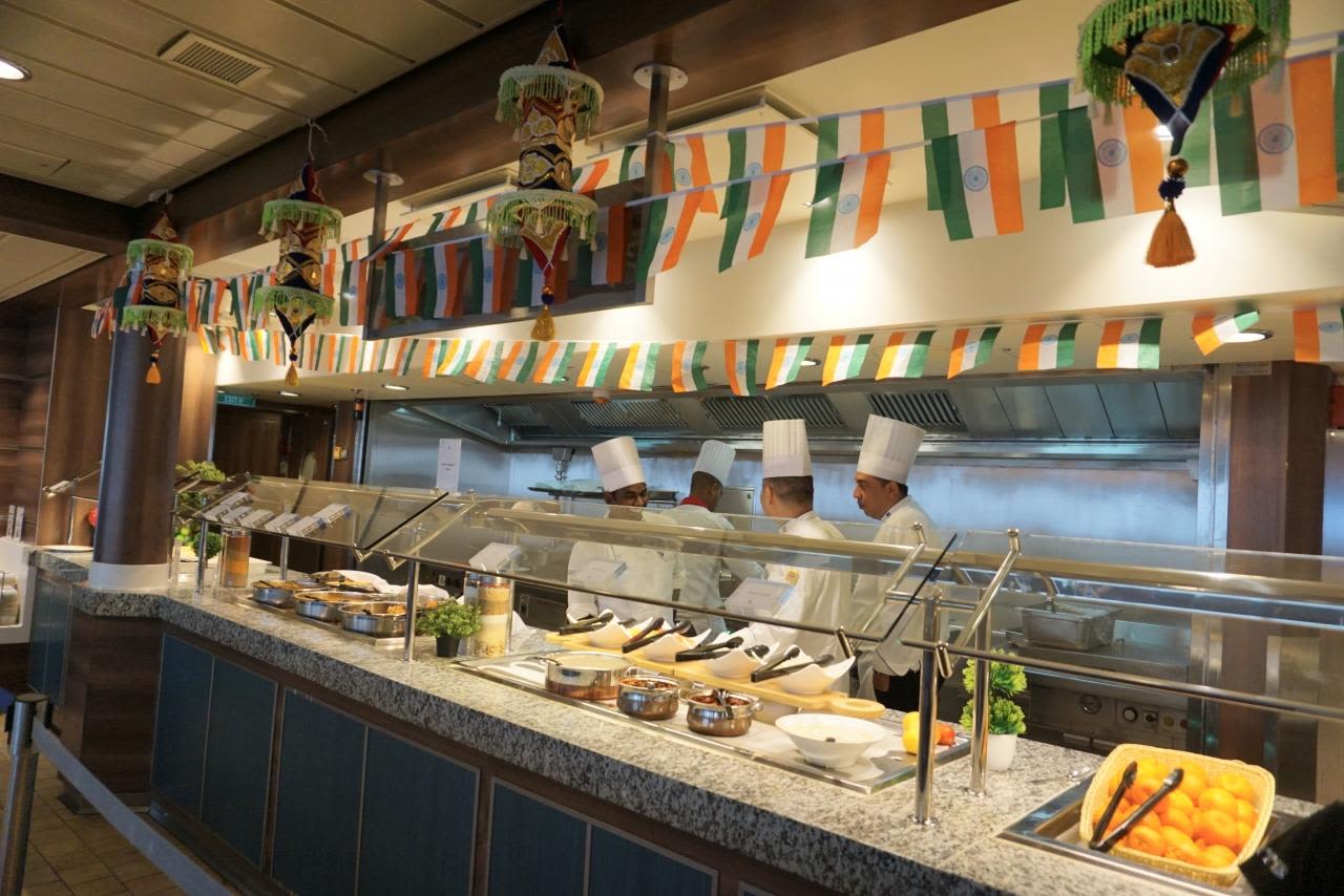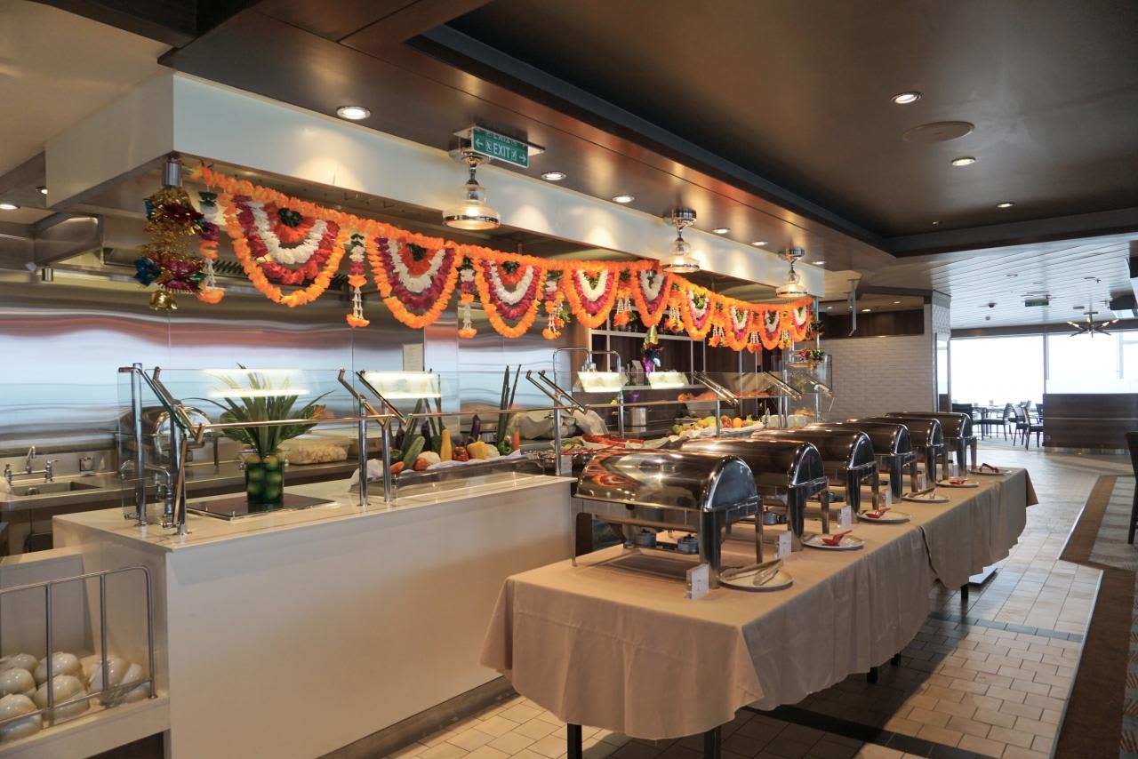 インド人ゲストの多いシンガポール発着の船なのでウィンジャマーの一角は宗教に沿った料理が用意されています。