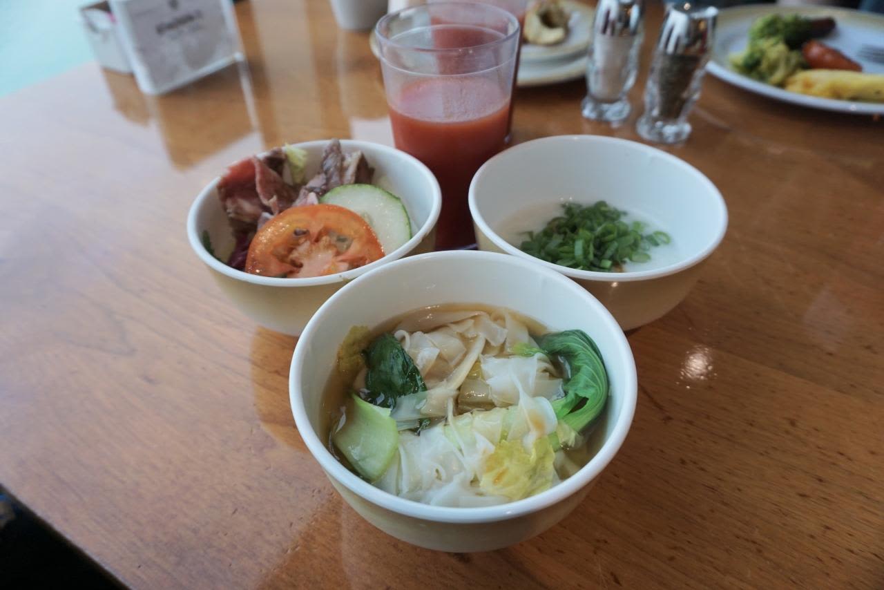 お粥もちょっぴり、サラダも加えてヘルシーアジアン朝食です。