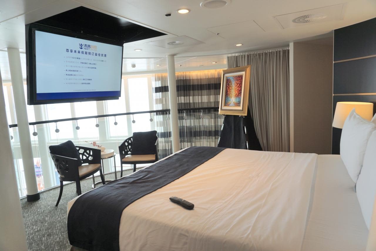 プロフィールを見る午後のお楽しみは何といってもクァンタム・オブ・ザ・シーズで一番高級な、船でたった1室しかないスイート客室の見学会。